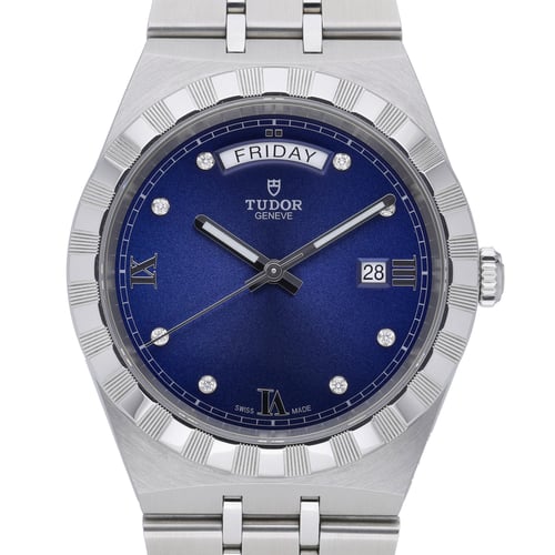 Presenting the Tudor Royal (Model 28600), a 41mm gents’ timepiece in excellent condition, crafted in steel with a matching bracelet and secure folding clasp. Its striking blue, diamond-set dial sits beneath scratch-resistant sapphire crystal, framed by a refined fluted bezel. Powered by a precise automatic movement and water resistant to 10 ATM, this 2025 watch balances everyday performance with unmistakable elegance. Supplied with original Tudor box, papers and white tag, plus Next Day Delivery and a 14 Day Return Policy for peace of mind. Covered by Tudor’s 5-year manufacturer’s warranty from the date of manufacture (2025). BQ Ref: 51855.