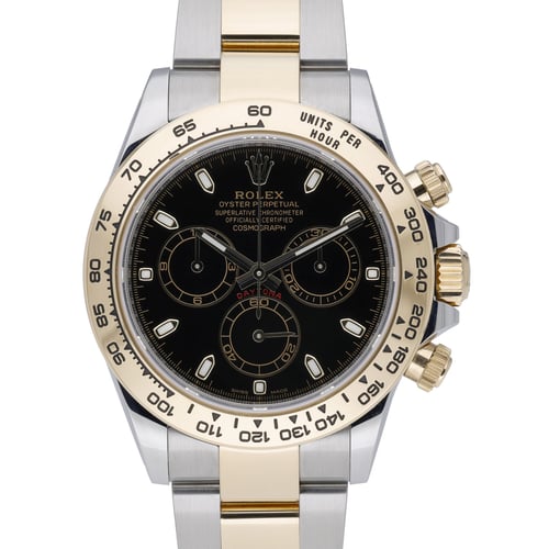 Elevate your collection with this 2023 Rolex Daytona, reference 116503 (BQ Ref 51879), crafted in steel and yellow gold with a 40mm case and tachymetric bezel. The black chronograph dial sits beneath a sapphire crystal and is powered by an automatic movement, paired with the two-tone Oyster bracelet secured by an Oysterlock clasp. Presented in excellent condition, this gents model is water resistant to 100M and arrives as a complete set with original box, original papers, and white tag. Covered by Rolex’s 5-year manufacturer’s warranty from the 2023 date of manufacture, it is available with next day delivery and a 14-day return policy.