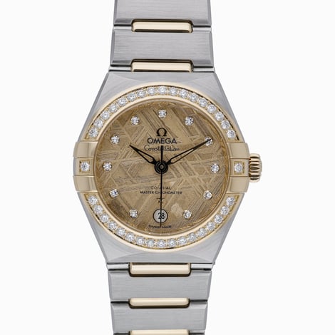 Elegantly sized at 29mm, this 2024 ladies’ Omega Constellation (Model 131.25.29.20.99.002; BQ Ref 51882) blends steel and yellow gold across the case and bracelet, secured with a folding clasp. Its captivating meteorite dial features diamond hour markers, encircled by a diamond-set bezel and protected by scratch-resistant sapphire crystal. Powered by an automatic movement with 50M water resistance, it is presented in excellent condition. Supplied with original box and papers, plus Next Day Delivery and a 14 Day Return Policy. Covered by a 5 Years Manufacturers warranty from the 2024 date of manufacture.
