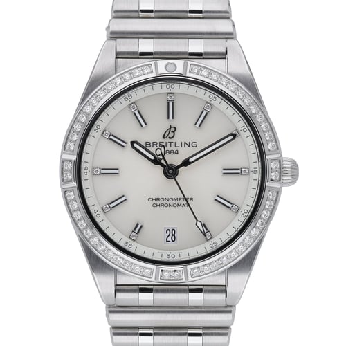 Elevate your collection with this Breitling Chronomat (Model A10380), a 36mm midsize masterpiece in stainless steel, presented in excellent condition. Powered by an automatic movement and protected by scratch‑resistant sapphire crystal, it balances everyday durability with refined luxury. A diamond-set bezel frames a striking white diamond dial, complemented by a robust steel bracelet and secure folding clasp. Water resistant to 100M, this 2022 example arrives complete with box and original papers, plus the original white tag. Backed by a 2 Year Warranty, a 14 Day Return Policy, and Next Day Delivery for your convenience. BQ Ref: 51931.