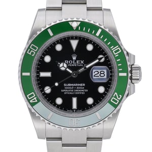 Rolex Submariner 126610LV “Starbucks” (BQ Ref 51920) in excellent condition. Presented in a 41mm Oystersteel case with a unidirectional rotatable bezel and a black dial under scratch‑resistant sapphire crystal, it features an automatic movement, Oyster bracelet, and secure Oysterlock clasp, delivering the Submariner’s hallmark 300M water resistance. Year of manufacture 2025; supplied complete with Rolex box, original papers, and the original white tag. Backed by a 5-year manufacturer’s warranty running from the 2025 date of manufacture. A modern gents’ tool‑watch icon that balances precision, durability, and timeless style. Next Day Delivery available with a 14 Day Return Policy.