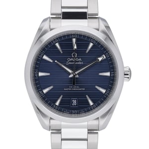 Refined and versatile, this Omega Seamaster Aqua Terra (Model 220.10.41.21.03.004, BQ Ref 51960) features a 41mm stainless-steel case with a polished bezel, a matching steel bracelet, and a secure folding clasp. The blue baton dial is protected by sapphire crystal, while the automatic movement delivers reliable, everyday performance. Water resistant to 150 metres, it’s equally at home in the city or by the sea. Dated 2022 and presented in excellent condition, this men’s Seamaster is supplied with its original box and papers for complete peace of mind. Includes a 2 Year Warranty, Next Day Delivery, and our 14 Day Return Policy.