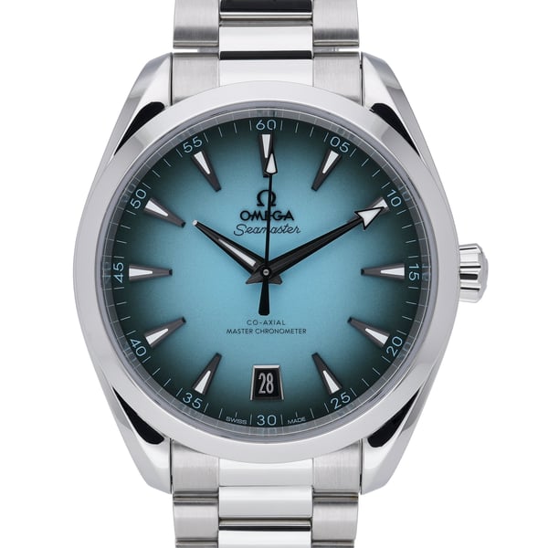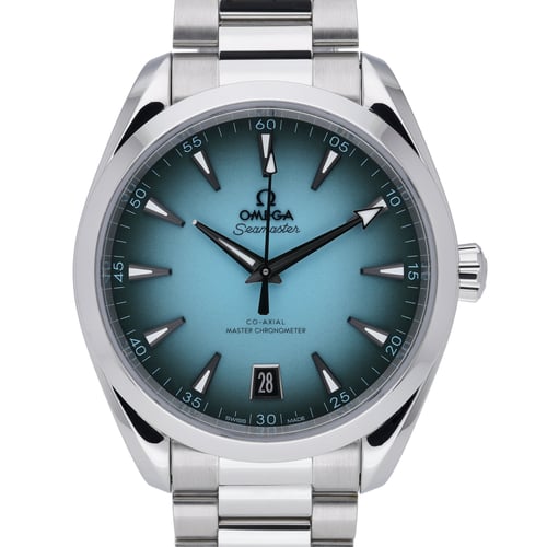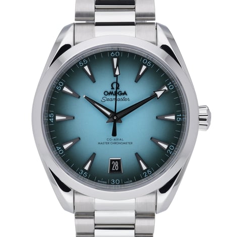 Discover refined versatility with the Omega Aqua Terra 150 M, Model 220.10.41.21.03.006. Crafted in 2025, this 41mm stainless steel timepiece features a smooth bezel, a striking turquoise blue and black baton dial, and a sapphire crystal for superb clarity and durability. Its automatic movement delivers reliable everyday performance, while the matching steel bracelet with a secure folding clasp ensures comfort and confidence on the wrist. Presented in excellent condition, this watch is supplied with its original box and papers. It includes a 5-year manufacturer’s warranty running from the date of manufacture (2025). Enjoy next day delivery and our 14-day return policy for added peace of mind. BQ Ref: 51969.