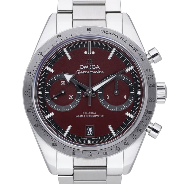 The Omega Speedmaster ’57 Chronograph (Model 332.12.41.51.11.001, BQ Ref 51952) blends vintage inspiration with modern performance. In excellent condition, this 40.5 mm stainless steel timepiece showcases a striking burgundy dial with bi‑compax chronograph layout beneath a sapphire crystal, framed by a tachymetric scale bezel. Its manual‑wind movement pays homage to the original 1957 Speedmaster, while a supple leather strap with pin buckle completes the classic look. Manufactured in 2022, it is supplied with its box and original papers. Covered by Omega’s 5‑year manufacturer’s warranty from the date of manufacture, it also benefits from our 14‑day return policy and next day delivery.