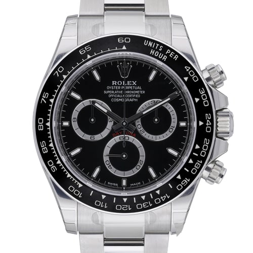 Experience the iconic Rolex Cosmograph Daytona with this 2024 reference 126500LN (BQ Ref 52042). Unworn with stickers, it pairs a 40mm Oystersteel case and matching Oyster bracelet with an Oysterlock clasp for assured comfort and security. The black chronograph dial sits beneath scratch-resistant sapphire crystal, framed by a tachymetric bezel for precise speed measurement. Powered by an automatic movement and water resistant to 100M, this Daytona delivers the performance and durability expected from Rolex.