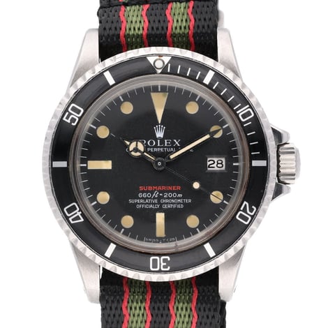 A coveted vintage diver, this Rolex Submariner “Single Red” Ref. 1680 (1972) pairs a 40mm steel case with a black dial bearing the signature red Submariner line. Its bidirectional rotatable bezel and plexi glass crystal capture authentic period character, while the automatic movement offers reliable performance. Presented on a fabric strap with pin buckle, this example is in good condition for its age and water resistant to 100M. Supplied with its box and a James Dowling Certificate, and covered by our 2 Year Warranty. BQ Ref: 52032. Enjoy Next Day Delivery and a 14 Day Return Policy.