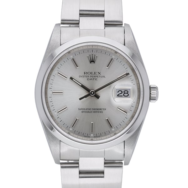 Discover the Rolex Date ref. 15200, a timeless 34mm gents model in Oystersteel that blends everyday versatility with classic Rolex refinement. Presented in excellent condition (2001), it features a smooth bezel, silver baton dial, and scratch‑resistant sapphire crystal for enduring clarity. The automatic movement delivers reliable, precise performance, while the robust Oyster bracelet with matching Oyster clasp ensures comfort and security. Water resistant to 100M, this piece is as practical as it is elegant. Supplied with its Rolex box and original papers, BQ Ref 52057, and backed by our 2 Year Warranty. Enjoy Next Day Delivery and a 14 Day Return Policy for complete peace of mind.