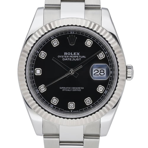 Experience timeless sophistication with this 2023 Rolex Datejust 41, reference 126334, presented in excellent condition. Crafted in Oystersteel with an 18 ct white gold fluted bezel, the 41mm case frames a refined black dial protected by scratch‑resistant sapphire crystal. The automatic movement delivers reliable precision, while the robust Oyster bracelet with folding clasp ensures comfort and security. Water resistant to 100M, this versatile gents watch is ideal for daily wear. Supplied with original Rolex box and papers (BQ Ref 52075) and covered by the Rolex 5-year manufacturer’s warranty from the date of manufacture. Enjoy confidence with our 14-day return policy and the convenience of next day delivery.