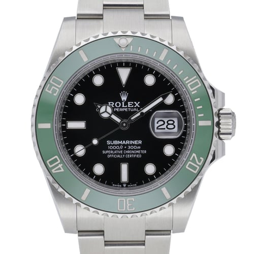 Presenting the Rolex Submariner 126610LV “Starbucks” (BQ Ref 52052), a 2025 gents model in excellent condition. This iconic diver features a 41mm Oystersteel case, plain black dial beneath a sapphire crystal, and a unidirectional rotatable bezel. Powered by an automatic movement and fitted with the robust Oyster bracelet and Oysterlock clasp, it offers professional performance with 300M water resistance. Supplied with Rolex box, original papers, and original white tag. Covered by a 5-year manufacturers warranty running from its 2025 date of manufacture, along with our 14 Day Return Policy for added peace of mind. Next Day Delivery available.