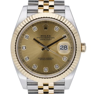 Experience the timeless elegance of this 2023 Rolex Datejust 41 (ref. 126333), presented in excellent condition. The 41mm steel and yellow gold case is crowned by a fluted bezel and paired with a two-tone Jubilee bracelet secured by an Oysterclasp. A champagne baton dial sits beneath scratch-resistant sapphire crystal, powered by an automatic movement with 100m water resistance for everyday confidence. Supplied complete with original box, original papers, and white tag (BQ Ref: 52072). Covered by a Rolex 5-year manufacturer’s warranty running from the 2023 date of manufacture. Next day delivery and a 14-day return policy included.