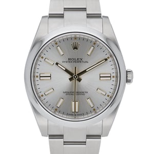 Discover the Rolex Oyster Perpetual 41 (ref. 124300), a 2025 gents model in New/Unworn condition. Crafted from robust Oystersteel with a 41mm case, domed bezel, and Oyster bracelet secured by an Oysterclasp, it delivers timeless design and everyday durability. The silver baton dial sits beneath scratch-resistant sapphire crystal, powered by a precise automatic movement and offering 100m water resistance. Supplied with original box, papers, and white tag (BQ Ref 52079). This watch is covered by a 5-year manufacturer’s warranty running from the 2025 date of manufacture. Enjoy next day delivery and a 14-day return policy for complete peace of mind.