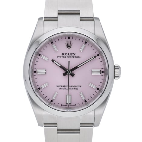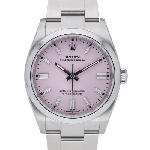 Elevate your collection with the Rolex Oyster Perpetual 36, model 126000. Crafted in robust Oystersteel with a refined domed bezel, it features a vibrant pink baton dial beneath scratch-resistant sapphire crystal and is paired with the classic Oyster bracelet secured by an Oysterclasp. The automatic movement delivers reliable precision, while 100M water resistance ensures everyday versatility. This New/Unworn 2025 example includes the original box, original papers, and white Rolex tag. Covered by a 5-year manufacturers warranty from the date of manufacture (2025). Case size: 36mm. Gender: Gents. BQ Ref: 52121. Enjoy Next Day Delivery and our 14 Day Return Policy.