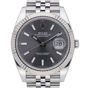 This 2023 Rolex Datejust 41 (ref. 126334, BQ Ref 52125) combines timeless design with modern performance. Its 41mm Oystersteel case is paired with a white gold fluted bezel and a slate baton dial protected by sapphire crystal, while the automatic movement delivers reliable precision and 100m water resistance. Presented on a Jubilee bracelet in Oystersteel with a secure folding clasp, this example is in excellent condition. Supplied with Rolex box, original papers, and white tag, and covered by a 5-year manufacturer’s warranty that runs from the 2023 date of manufacture. Enjoy next day delivery and a 14-day return policy.