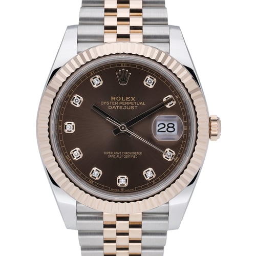 Presenting the Rolex Datejust 41, reference 126331, a 2023 model in excellent condition. Crafted in steel and rose gold with a fluted bezel, it features a 41mm case, chocolate dial, and sapphire crystal. The automatic movement is paired with a steel and rose gold Jubilee bracelet and secure folding clasp, offering both refinement and comfort. Water resistant to 100M, this versatile timepiece is supplied with its original box, papers, and white tag. Covered by a 5-year Rolex manufacturer’s warranty from the 2023 date of manufacture. BQ Ref: 52127. Enjoy Next Day Delivery and shop with confidence with our 14 Day Return Policy.