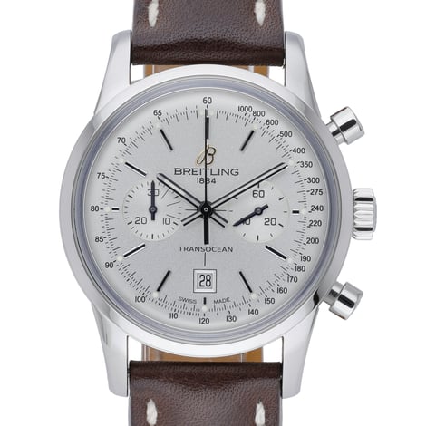 Elevate your collection with the Breitling Transocean Chronograph (BQ Ref 52135), a 2017 gents’ timepiece presented in excellent condition. This refined 38mm model features a stainless steel case with a plain bezel, a crisp silver chronograph dial, and a scratch-resistant sapphire crystal. Powered by an automatic movement, it combines precision with effortless style. The watch is fitted to a leather strap secured by a pin buckle for classic comfort and versatility, and offers practical durability with 10 ATM water resistance. Supplied with its box and backed by our 2 Year Warranty, it also includes Next Day Delivery and a 14 Day Return Policy for complete peace of mind. A sophisticated choice for everyday wear or special occasions, the Transocean Chronograph captures Breitling’s heritage of performance and elegance.