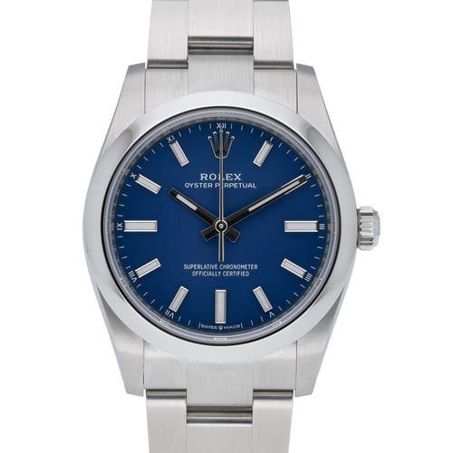Rolex Oyster Perpetual 124200 (BQ Ref 52183) in excellent condition, featuring a versatile 34mm midsize Oystersteel case with a domed bezel and a refined medium-blue baton dial beneath scratch‑resistant sapphire crystal. Powered by an automatic movement and water resistant to 100m, it’s paired with the classic Oyster bracelet and secure Oysterclasp for everyday comfort and durability. Year of manufacture: 2025, and covered by the Rolex 5-year manufacturer’s warranty from its 2025 manufacture date. Supplied as a full set with box, original papers, and original white tag. Enjoy next day delivery and a 14‑day return policy.