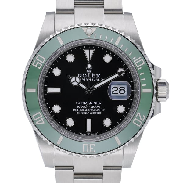 Presenting the Rolex Submariner 126610LV “Starbucks” (BQ Ref 52220), a 2025 model in excellent condition. Built in durable Oystersteel with a 41mm case and matching Oyster bracelet secured by an Oysterlock clasp, it features a black dial under sapphire crystal and a unidirectional rotatable bezel. Powered by an automatic movement and water resistant to 300M, this is a benchmark tool watch with everyday versatility. Supplied with original box, original papers, and the original white tag. Covered by a 5-year manufacturer’s warranty that runs from the 2025 date of manufacture, along with our 14 Day Return Policy. Next Day Delivery available.
