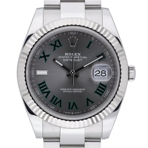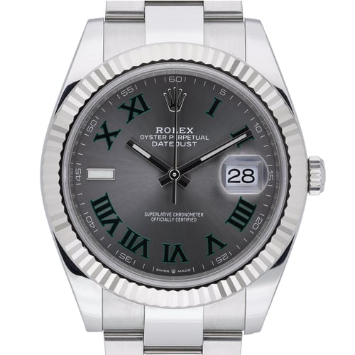 Discover the Rolex Datejust 41, reference 126334, a 2021 gents model presented in excellent condition. Crafted in steel and white gold with the iconic fluted bezel, this 41mm timepiece pairs a slate Roman dial with scratch-resistant sapphire crystal for timeless legibility. The automatic movement delivers dependable precision, while 100M water resistance, an Oystersteel Oyster bracelet, and a secure folding clasp ensure everyday durability and comfort. Supplied with its original Rolex box, original papers, and white tag, this example is ready to wear and enjoy. It includes a 5-year manufacturer’s warranty counted from the date of manufacture (2021), plus our 14-day return policy for added peace of mind. Next Day Delivery available. BQ Ref: 52234.