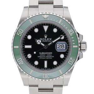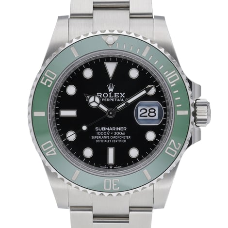 Presenting the Rolex Submariner 126610LV “Starbucks” (BQ Ref 52226), a 2025 example in excellent condition. This 41mm Oystersteel model pairs a black dial with a unidirectional rotatable bezel and the robust Oyster bracelet secured by an Oysterlock clasp. Powered by an automatic movement and protected by scratch-resistant sapphire crystal, it offers professional performance with 300m water resistance. Supplied complete with original Rolex box, papers, and white tag. Covered by a 5-year manufacturer’s warranty from its 2025 date of manufacture. Enjoy next day delivery and a 14-day return policy. A contemporary classic from Rolex, the Submariner delivers precision, durability, and unmistakable style.