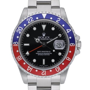 Discover the Rolex GMT‑Master II 16710 “Pepsi,” an icon of travel timekeeping presented in excellent condition. Crafted in robust Oystersteel with a 40mm case and matching Oyster bracelet secured by an Oysterlock clasp, it features a black dial beneath scratch‑resistant sapphire crystal and the signature bidirectional rotatable red‑and‑blue bezel for effortless dual‑time tracking. Powered by a reliable automatic movement and water resistant to 100M, this 2000 example includes its original Rolex box, original papers, and green tag, underscoring its completeness and provenance. Supplied with a 2 Year Warranty, Next Day Delivery, and our 14 Day Return Policy. BQ Ref: 52213.