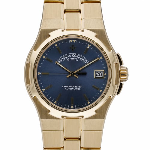 Discover the Vacheron Constantin Overseas, model 42040—a refined 37mm gents timepiece crafted entirely in 18ct yellow gold. This 1997 example is presented in excellent condition, showcasing a striking blue baton dial beneath scratch-resistant sapphire crystal and an understated plain bezel. Powered by a reliable automatic movement and water resistant to 150M, it balances luxury and everyday practicality. The matching 18ct yellow gold bracelet secures with an 18ct gold folding clasp for a seamless, comfortable fit. Supplied with its original box and papers, this piece is backed by our 2-year warranty, with a 14 Day Return Policy for added peace of mind. Next Day Delivery available. BQ Ref: 52271.
