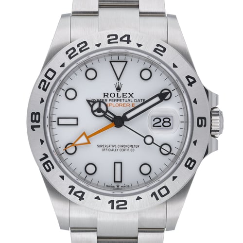 Discover the Rolex Explorer II, model 226570, a 2025 new/unworn example crafted in 42mm Oystersteel. Its clean white dial sits beneath scratch-resistant sapphire crystal and is framed by a functional 24-hour graduated bezel, powered by a precise automatic movement. The robust Oyster bracelet with Oysterlock clasp and 100 m water resistance make it a dependable companion for everyday wear and travel. Supplied with Rolex box, original papers, and white tag, this watch is covered by a 5-year manufacturer’s warranty from the 2025 date of manufacture. BQ Ref: 52269. Enjoy next day delivery and a 14-day return policy for complete peace of mind.