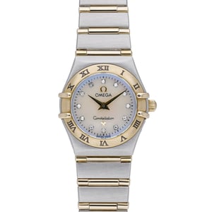 Elegant and enduring, this ladies’ Omega Constellation (BQ Ref: 52285) pairs steel and yellow gold across a compact 22mm case and matching bracelet, framing a lustrous mother-of-pearl diamond dial beneath scratch-resistant sapphire crystal. Powered by a precise quartz movement, the watch features a plain bezel and secure folding clasp for refined, everyday wear. Dated 1998 and presented in good condition, it is supplied with its box and backed by a 2 Year Warranty for added confidence. A timeless choice that transitions effortlessly from day to evening, it offers the hallmark Constellation sophistication in a versatile, understated size. Enjoy Next Day Delivery and our 14 Day Return Policy.
