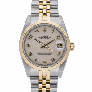 Experience timeless Rolex elegance with this midsize 31mm Datejust, reference 68273 (BQ Ref 52317). Crafted in classic steel and yellow gold, it features a refined fluted bezel and a creamy Arabic dial protected by scratch‑resistant sapphire crystal. The automatic movement delivers reliable performance, while the iconic Jubilee bracelet with folding clasp ensures all‑day comfort. Produced in 1991 and presented in excellent condition, this piece offers everyday versatility with water resistance to 100M. Supplied with its original box and papers, it comes backed by our 2 Year Warranty for added peace of mind. Enjoy convenient Next Day Delivery and a 14 Day Return Policy. A sophisticated and enduring staple of the Rolex collection, this Datejust blends heritage and practicality in a perfectly balanced midsize format.