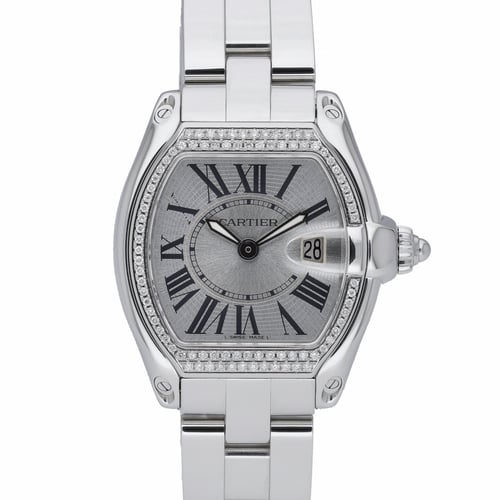 Cartier Roadster, Model 2675 (BQ Ref 52380), in excellent condition. This gents quartz timepiece features a 31 x 37mm stainless steel case adorned with a diamond-set bezel, paired with a silver Roman dial protected by scratch-resistant sapphire crystal. The integrated stainless steel bracelet with folding clasp ensures secure, comfortable wear, while 10 ATM water resistance adds everyday practicality. Crafted in 2000, the Roadster’s distinctive automotive-inspired curves deliver timeless Cartier elegance with reliable, low-maintenance performance. Supplied with box, supported by our 2 Year Warranty and 14 Day Return Policy, and available with Next Day Delivery.