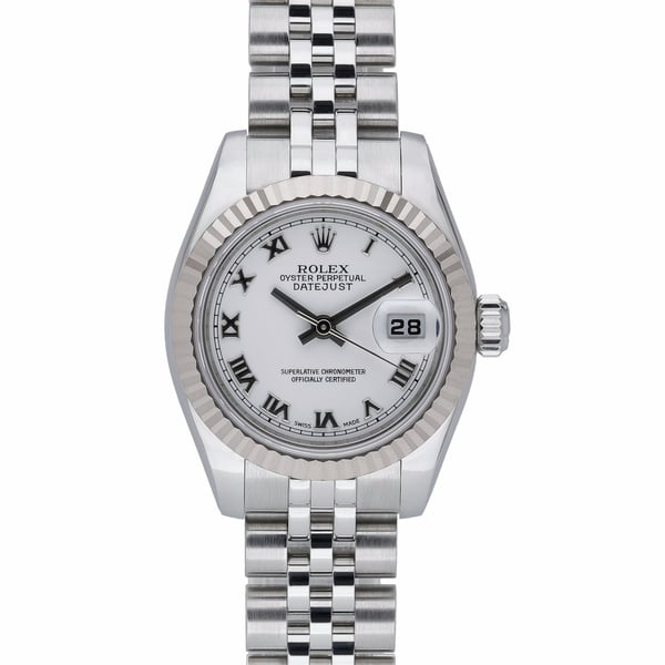 Refined and timeless, this ladies’ Rolex Datejust (179174) pairs a 26mm steel and white gold case with a signature fluted bezel and a white Roman dial protected by sapphire crystal. Powered by an automatic movement and secured by a Jubilee bracelet in Oystersteel with a concealed clasp, it offers dependable performance and everyday elegance. Produced in 2005 and presented in excellent condition, this example comes complete with its box, original papers, and green tag. Water resistant to 100M, it’s equally at home in formal and daily settings. BQ Ref 52352. Supplied with a 2 Year Warranty, Next Day Delivery, and our 14 Day Return Policy. Please note: this watch features aftermarket alterations.