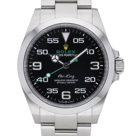 Rolex Air-King 126900 (BQ Ref 52395), presented in excellent condition, pairs precision with iconic design. The 40mm Oystersteel case with domed bezel frames a black Arabic dial under scratch‑resistant sapphire crystal, powered by a robust automatic movement. An Oystersteel bracelet with folding clasp ensures comfort and durability, while 100M water resistance makes it ready for daily wear. This 2025 model is supplied with its original box, papers, and white tag. Covered by a 5-year manufacturer’s warranty from the date of manufacture, it offers peace of mind alongside timeless style. Enjoy next day delivery and our 14-day return policy for a seamless experience. A refined choice for gents seeking a modern classic, the Air-King embodies Rolex’s aviation heritage with contemporary engineering.