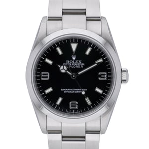 Discover the Rolex Explorer 114270 (BQ Ref 52427), a 2002 example presented in excellent condition. Its classic 36mm Oystersteel case with smooth bezel frames a black Arabic dial protected by scratch‑resistant sapphire crystal. Driven by a precise automatic movement and paired with the robust Oyster bracelet and secure Oysterlock clasp, it offers 100M water resistance for confident daily wear. This Explorer is supplied with its Rolex box and original papers, and includes a 2 Year Warranty. Enjoy added peace of mind with our 14 Day Return Policy and the convenience of Next Day Delivery.