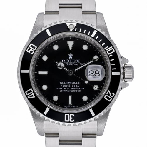 Discover the Rolex Submariner 16610 (BQ Ref 52407), a 2008 example in excellent condition. This iconic 40mm steel diver features a black dial beneath scratch‑resistant sapphire crystal, framed by a unidirectional rotatable bezel. Powered by an automatic movement and fitted with the steel Oyster bracelet and secure Oysterlock clasp, it offers reliable performance with 300M water resistance. Supplied complete with original box, original papers, and green tag, this gents Submariner is ready for any collection. Enjoy peace of mind with our 2 Year Warranty, a 14 Day Return Policy, and Next Day Delivery.