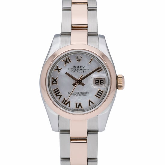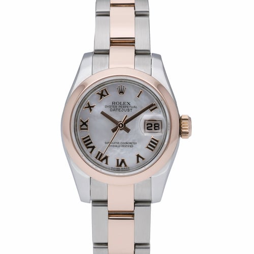 Presenting the Rolex Datejust (ref. 179161), a 26mm ladies’ model crafted in Steel & Rose Gold and offered in excellent condition. This 2014 example features a domed bezel, white mother-of-pearl dial with Roman numerals, and sapphire crystal. The automatic movement is paired with an Oyster bracelet in Steel & Rose Gold and a secure folding clasp, blending timeless style with everyday comfort. Water resistant to 100M, it’s as practical as it is elegant. Supplied with original Rolex box, papers, and green tag. BQ Ref: 52435. Includes a 2 Year Warranty, plus a 14 Day Return Policy and Next Day Delivery for your convenience.
