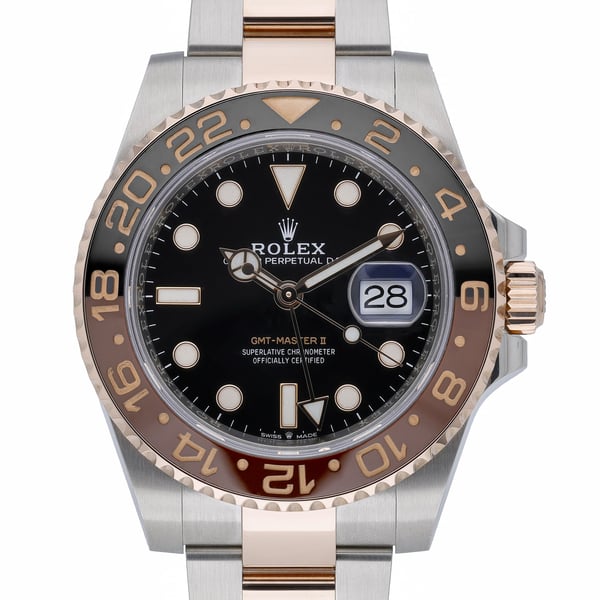 Discover the Rolex GMT-Master II "Root Beer" (ref. 126711CHNR), BQ Ref 52417, in excellent condition. Crafted in steel and rose gold with a 40mm case, this 2019 dual-time icon features a bidirectional rotatable bezel, a black dial beneath scratch-resistant sapphire crystal, and an Oyster bracelet secured by an Oysterlock clasp. Powered by an automatic movement and water resistant to 100M, it is built for everyday versatility and travel-ready performance. Supplied as a full set with original box, papers, and white tag, and backed by our 2 Year Warranty, plus a 14 Day Return Policy for peace of mind. Next Day Delivery available.