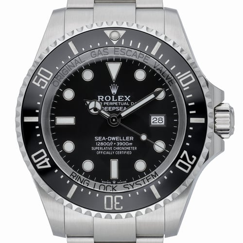 Discover the Rolex Sea-Dweller Deepsea, reference 126660, a professional diver’s instrument in excellent condition from 2019. Crafted in robust 44mm Oystersteel with a black dial beneath scratch‑resistant sapphire crystal, it features a unidirectional rotatable bezel and an automatic movement engineered for extreme depths—water resistant to an extraordinary 3,900 metres. The watch is fitted with the classic Oyster bracelet and secure Oysterlock clasp for unmatched comfort and durability. Supplied with its Rolex box, original papers, and original white tag, this Deepsea is ready for immediate enjoyment. Backed by our 2 Year Warranty and a 14 Day Return Policy, with Next Day Delivery available for added convenience. BQ Ref: 52410.