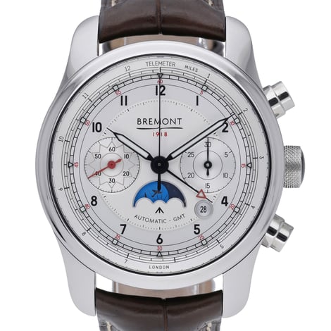 Celebrate refined British watchmaking with the Bremont 1918 Star Legacy Automatic Chronograph (Model 1918, BQ Ref 52408). Presented in excellent condition, this 43mm steel timepiece features a polished bezel and a crisp white chronograph dial protected by sapphire crystal. Its automatic movement is paired with a supple leather strap and secure pin buckle, while an exceptional 100 ATM water resistance underscores robust versatility. Manufactured in 2018, this gents’ chronograph arrives complete with its original box and papers. Backed by our 2 Year Warranty, it’s available with Next Day Delivery and supported by a 14 Day Return Policy—an ideal addition for collectors seeking heritage, precision, and everyday wearability.