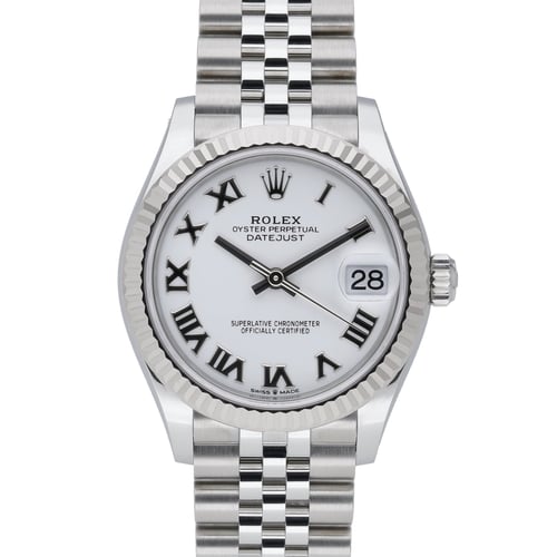 Elegance and precision define this midsize Rolex Datejust 31 (ref. 278274, BQ Ref 52452), crafted in steel and white gold with the signature fluted bezel. The 31mm case frames a crisp white Roman dial under scratch‑resistant sapphire crystal, powered by a reliable automatic movement and paired with a Jubilee bracelet in Oystersteel featuring a concealed clasp. Manufactured in 2025 and in excellent condition, it offers 100m water resistance for everyday confidence. Supplied complete with original Rolex box, papers, and white tag, and covered by a 5-year manufacturer’s warranty from the 2025 date of manufacture. Enjoy next day delivery and a 14-day return policy for peace of mind.