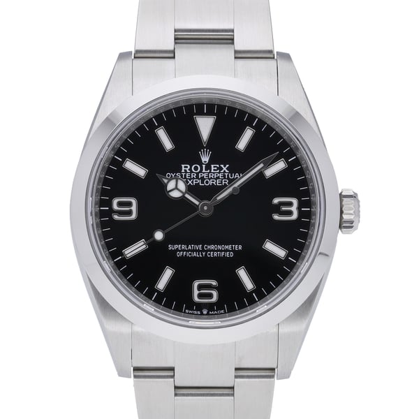 Presenting the Rolex Explorer 36, ref. 124270 (BQ Ref 52541), a 2025 example in excellent condition. Crafted in durable Oystersteel with a smooth bezel and black dial beneath scratch-resistant sapphire crystal, this automatic timepiece balances heritage and everyday versatility. The 36 mm Oyster case is paired with the Oyster bracelet and secure Oysterlock clasp, and offers 100 m water resistance for confident wear. Supplied with original box, papers, and white tag, this Explorer is covered by a 5-year manufacturer’s warranty from its 2025 date of manufacture. Model: Explorer | Movement: Automatic | Case: 36 mm Oystersteel | Bracelet: Oystersteel Oyster | Glass: Sapphire Crystal. Enjoy next day delivery and a 14-day return policy.