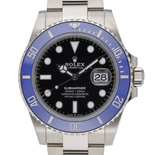 Presenting the Rolex Submariner 126619LB (BQ Ref 52530), a gents’ 41mm diver crafted in solid 18ct white gold. This 2021 example is in excellent condition and features an automatic movement, a black dial protected by scratch‑resistant sapphire crystal, and a unidirectional rotatable bezel for precise timing. The robust Oyster bracelet and secure Oysterlock clasp ensure comfort and confidence on the wrist, while 300M water resistance upholds the Submariner’s professional dive pedigree. Supplied with original Rolex box, original papers, and the white tag, this piece is complete and ready to wear. Backed by a 5 Years Manufacturers warranty from the date of manufacture, it also includes our 14 Day Return Policy and Next Day Delivery for your convenience. A refined, precious‑metal take on an enduring icon.