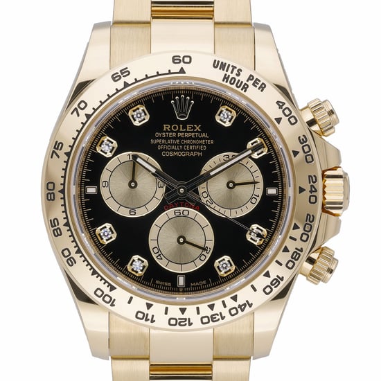 Introducing the 2024 Rolex Daytona (Model 126508), BQ Ref 52513, presented in excellent condition. Crafted in 18ct yellow gold with a 40mm Oyster case and matching Oyster bracelet and clasp, it showcases a black, diamond-set chronograph dial under scratch-resistant sapphire crystal. The tachymetric scale bezel and automatic movement deliver the precision and performance that define the Daytona, complemented by 100m water resistance for everyday versatility. Supplied with Rolex box and original papers, this timepiece is covered by the 5-year manufacturer’s warranty from its 2024 date of manufacture. Next day delivery available, with a 14-day return policy.