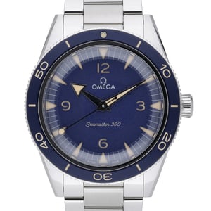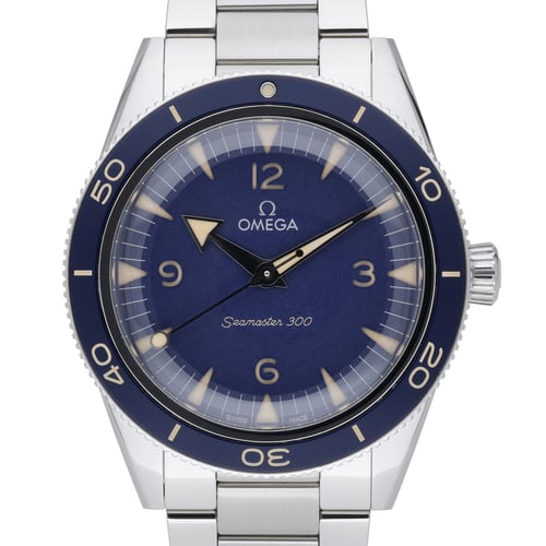 Discover the Omega Seamaster 300 (Model 234.30.41.21.03.001), a 41mm stainless steel diver in excellent condition, BQ Ref 52519. The blue Arabic‑numeral dial sits beneath scratch‑resistant sapphire crystal and is framed by a ceramic bezel, paired with a robust steel bracelet and secure folding clasp. Powered by an automatic movement and water‑resistant to 300 metres, this 2021 gents’ model blends heritage design with modern performance. Supplied with original box and papers, and backed by a 5‑year manufacturer’s warranty that runs from the date of manufacture. Enjoy next day delivery and a 14‑day return policy.