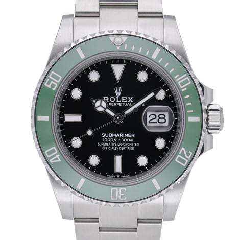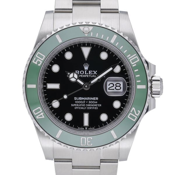 BQ Ref 52523: The Rolex Submariner 126610LV “Starbucks” is a 2023 automatic diver’s watch in excellent condition, showcasing a 41mm Oystersteel case with sapphire crystal, a black dial, and a unidirectional rotatable bezel. Engineered for performance to 300M water resistance, it features the robust Oyster bracelet with an Oysterlock clasp for secure, comfortable wear. This example is supplied with its Rolex box, original papers, and white tag, and is covered by a 5 Years Manufacturers warranty from the date of manufacture. A modern classic renowned for precision and versatility, the Submariner remains the benchmark for professional dive watches while transitioning effortlessly to everyday wear. Model details: Rolex Submariner 126610LV (Automatic), Oystersteel case and bracelet, 41mm case, plain black dial, sapphire crystal, unidirectional bezel. Practicalities: Next Day Delivery and a 14 Day Return Policy for peace of mind. An outstanding choice for collectors and enthusiasts seeking an iconic reference with complete set and exceptional condition.