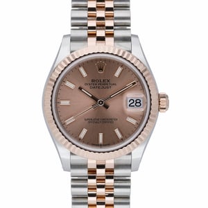 Experience timeless elegance with the Rolex Datejust 31, model 278271. Crafted in steel and rose gold with a refined 31mm case, this 2021 midsize piece features a fluted bezel, a clean pink dial, and sapphire crystal for enduring clarity. The automatic movement ensures reliable precision, while 100m water resistance supports everyday wear. Its Jubilee bracelet with a concealed clasp offers exceptional comfort and a seamless look. In excellent condition, this watch is supplied with its original box, papers, and white tag. Covered by a 5-year manufacturer’s warranty running from the 2021 date of manufacture, it also includes next day delivery and a 14-day return policy for peace of mind. BQ Ref: 52508.