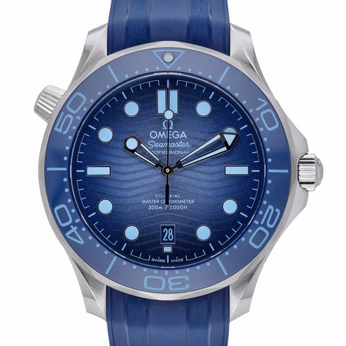 Refined and robust, this 2024 Omega Seamaster Diver 300M (Model 210.32.42.20.03.002, BQ Ref 52584) pairs a 42mm stainless-steel case with a blue dial and a matching blue rubber strap secured by a pin buckle. Powered by an automatic movement, it features a unidirectional rotating bezel, sapphire crystal, and 300m water resistance—engineered for the sea and styled for everyday wear. Presented in excellent condition, it is complete with its box and original papers. This timepiece is covered by Omega’s five-year manufacturer’s warranty from its 2024 date of manufacture. Enjoy next day delivery and a 14-day return policy.