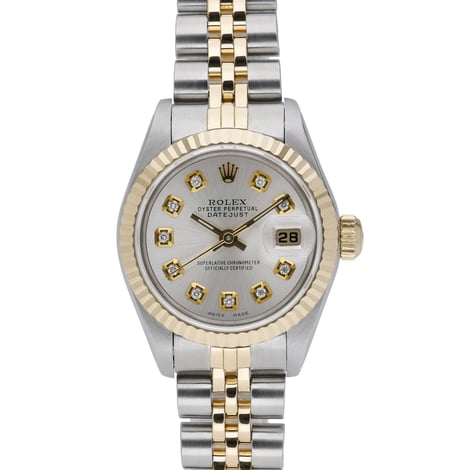 Rolex Datejust ref. 69173 (BQ Ref 52524) — a timeless ladies’ 26mm model crafted in steel and yellow gold with a classic fluted bezel and Jubilee bracelet. Dating from 1988 and in excellent condition, it houses a reliable automatic movement and features a silver diamond-set dial protected by sapphire crystal. Water resistant to 10 ATM, this elegant piece is secured with a folding clasp and delivers the signature blend of everyday versatility and refined luxury that defines the Datejust. Supplied with its original box and papers, this watch includes a 2 Year Warranty for added peace of mind, plus Next Day Delivery and a 14 Day Return Policy. A beautiful example of Rolex craftsmanship, ready to wear and enjoy.