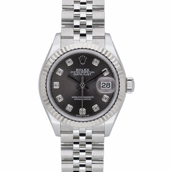 This ladies’ Rolex Datejust 28 (ref. 279174, BQ Ref 52643) pairs timeless elegance with everyday reliability. Crafted in steel and 18 ct white gold, it features a 28mm case with a classic fluted bezel and a rhodium dial set with diamond hour markers beneath scratch‑resistant sapphire crystal. The automatic movement is housed on a Jubilee bracelet in Oystersteel with a concealed clasp for a seamless finish, and the watch offers 100M water resistance. Manufactured in 2019 and presented in excellent condition, it is supplied with its original box, papers, and white tag. Enjoy peace of mind with a 2 Year Warranty, a 14 Day Return Policy, and Next Day Delivery. A refined choice for any collection, this Datejust embodies Rolex’s signature balance of luxury, precision, and enduring style.