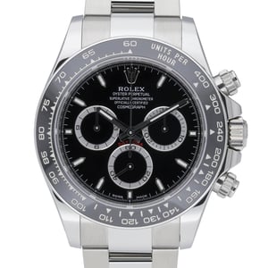 Presenting the Rolex Daytona 126500LN (BQ Ref 52633), a 2024 example in excellent condition. Crafted from robust Oystersteel, this 40mm chronograph features a sleek black dial, a tachymetric scale bezel for precision timing, and scratch‑resistant sapphire crystal. Powered by an automatic movement and water resistant to 100m, it pairs everyday versatility with legendary racing pedigree. The Oyster bracelet and secure Oysterlock clasp ensure comfort and confidence on the wrist. Supplied with original box, white tag, and original papers, this watch is covered by a 5‑year Rolex manufacturer’s warranty from the date of manufacture (2024). Enjoy next day delivery and our 14‑day return policy.