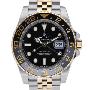 Rolex GMT-Master II 126713GRNR (BQ Ref 52621) in excellent condition, uniting travel-ready functionality with two-tone elegance. The 40mm steel and yellow gold case frames a black dial protected by sapphire crystal, while the bidirectional rotatable bezel enables intuitive tracking of multiple time zones. Powered by an automatic movement and secured on a steel and yellow gold Jubilee bracelet with Oysterlock clasp, it offers everyday robustness with 100M water resistance. Year of manufacture: 2023. Supplied with original Rolex box, original papers, and the original white tag. Covered by Rolex’s 5-year manufacturer’s warranty from the date of manufacture (2023). Enjoy Next Day Delivery and a 14 Day Return Policy for complete peace of mind.