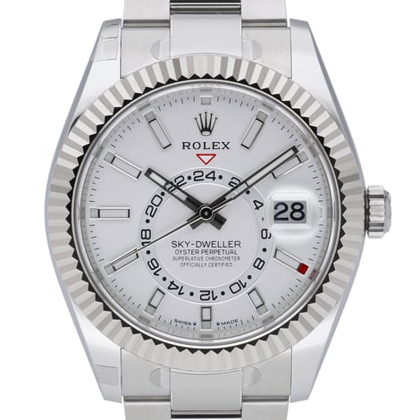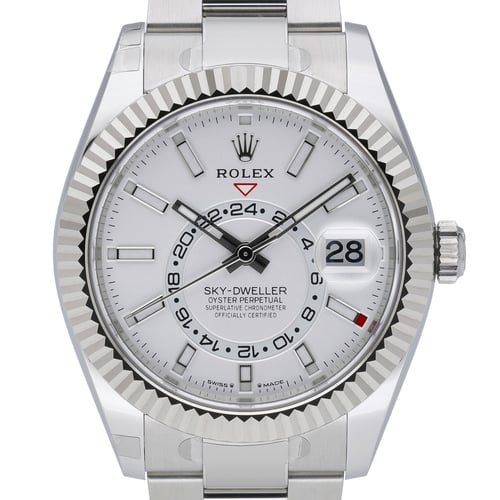 Presenting the Rolex Sky-Dweller 336934, a 42mm model crafted in Oystersteel and white gold with Rolex’s signature fluted bezel. This unworn example (still with stickers) showcases a crisp white dial featuring the Sky-Dweller’s annual calendar and dual time functionality, protected by sapphire crystal. It is powered by an automatic movement, water resistant to 100M, and fitted with the classic Oyster bracelet and Oysterclasp for secure, refined wear. Year of manufacture: 2026. Supplied complete with Rolex box, original papers, and green tag. Covered by a 5 Years Manufacturers warranty from the 2026 manufacture date. BQ Ref 52687. Next Day Delivery available with a 14 Day Return Policy.
